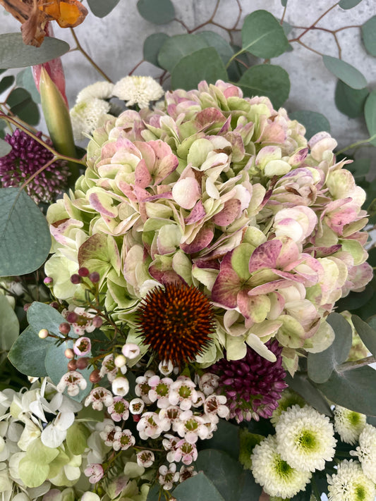 Arreglo Floral Astilbe y Hortensia en tonos Rosas