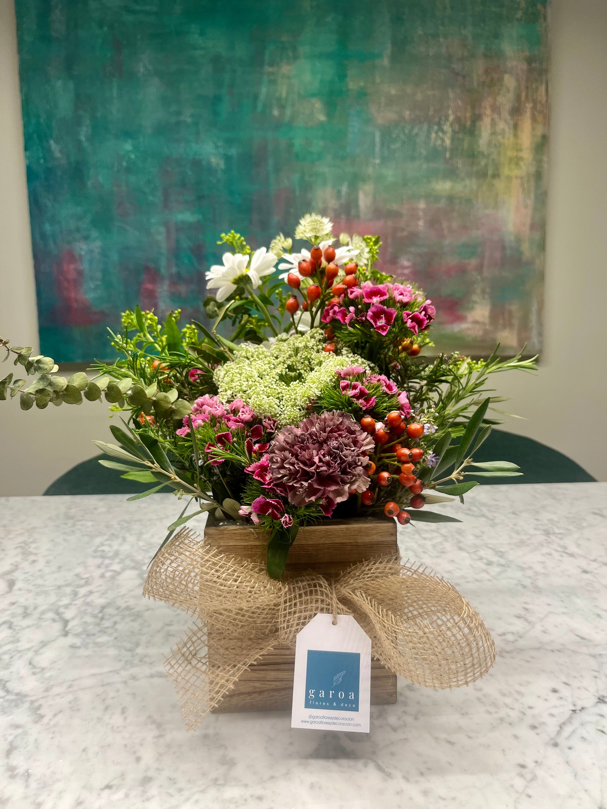 Arreglo Floral Campestre en Base de Madera