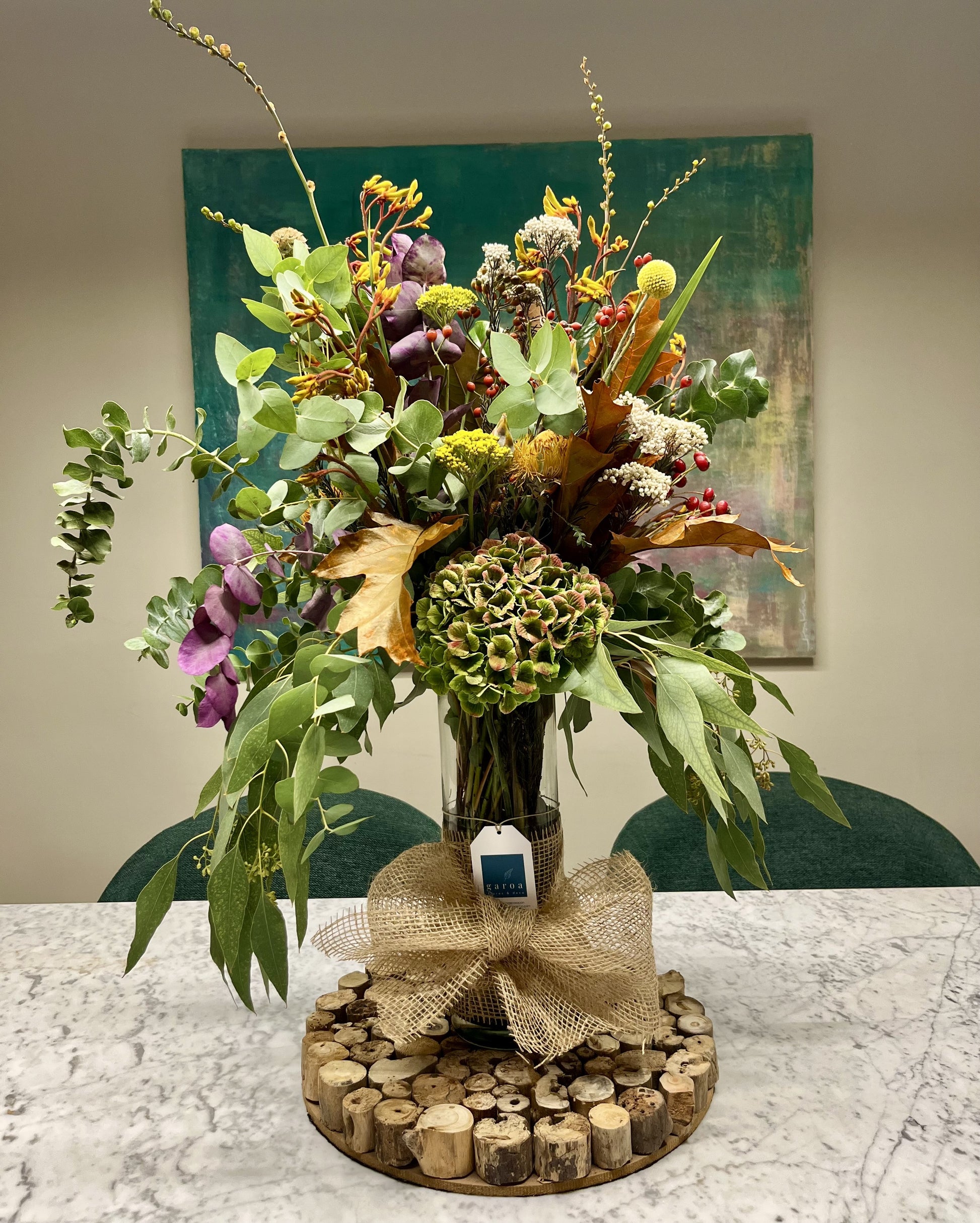 Arreglo Floral Otoño Tonos Verdes y Marrones