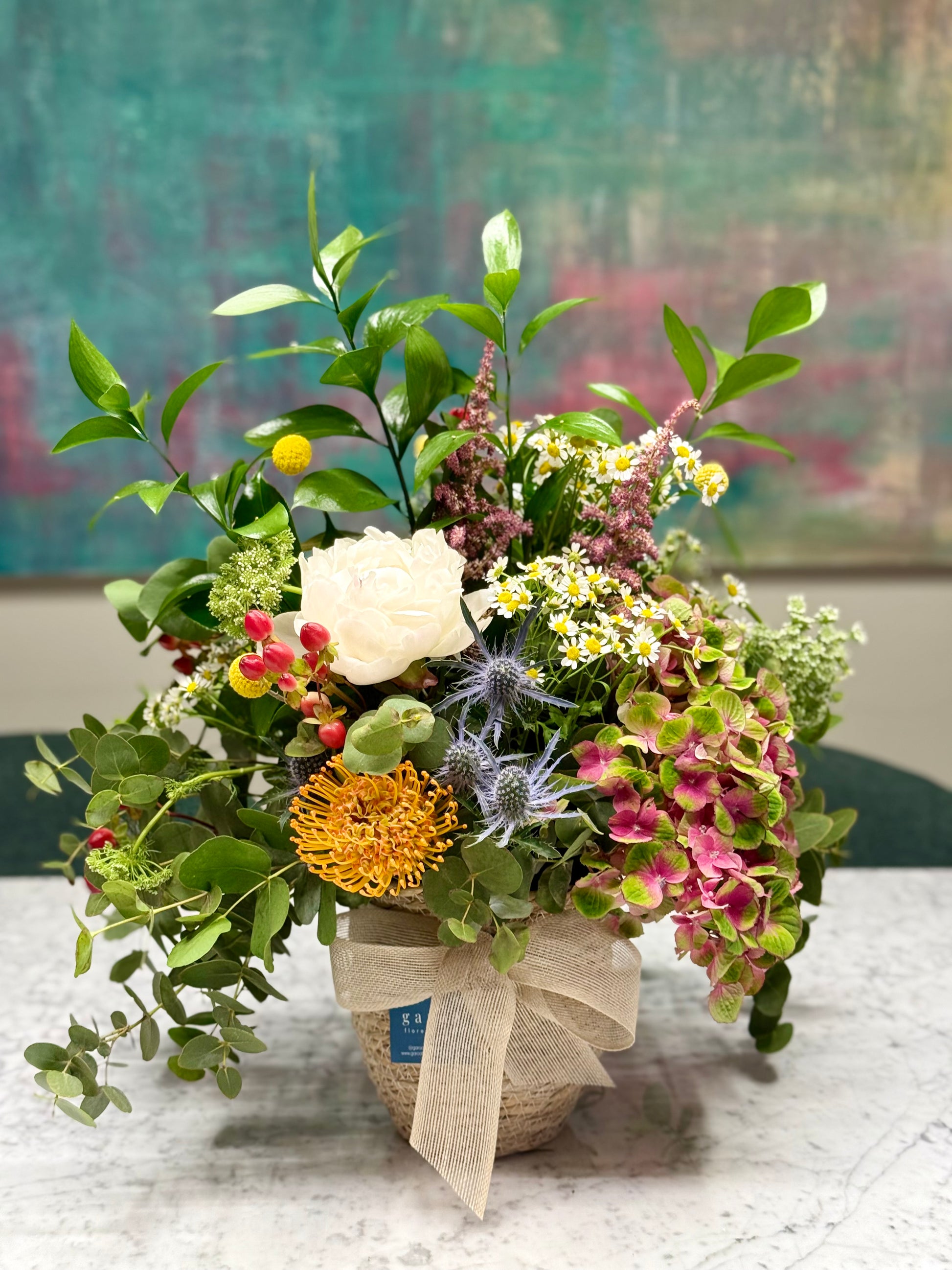 La composición final de este producto puede variar ligeramente respecto a la foto, ya que utilizamos flores de temporada. Nos esforzamos por mantener la calidad y el estilo de nuestros arreglos.