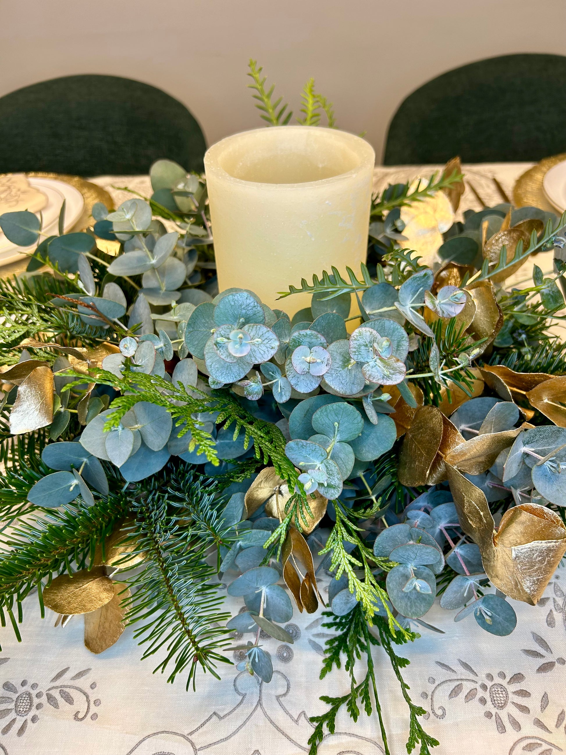 Este elegante centro de mesa con vela en el centro es la pieza perfecta para iluminar tus celebraciones navideñas. Con un diseño sofisticado y acogedor, la vela central aporta una cálida luz que realza el ambiente festivo. Ideal para mesas, rincones o como detalle decorativo, este centro de mesa crea una atmósfera navideña única y encantadora.