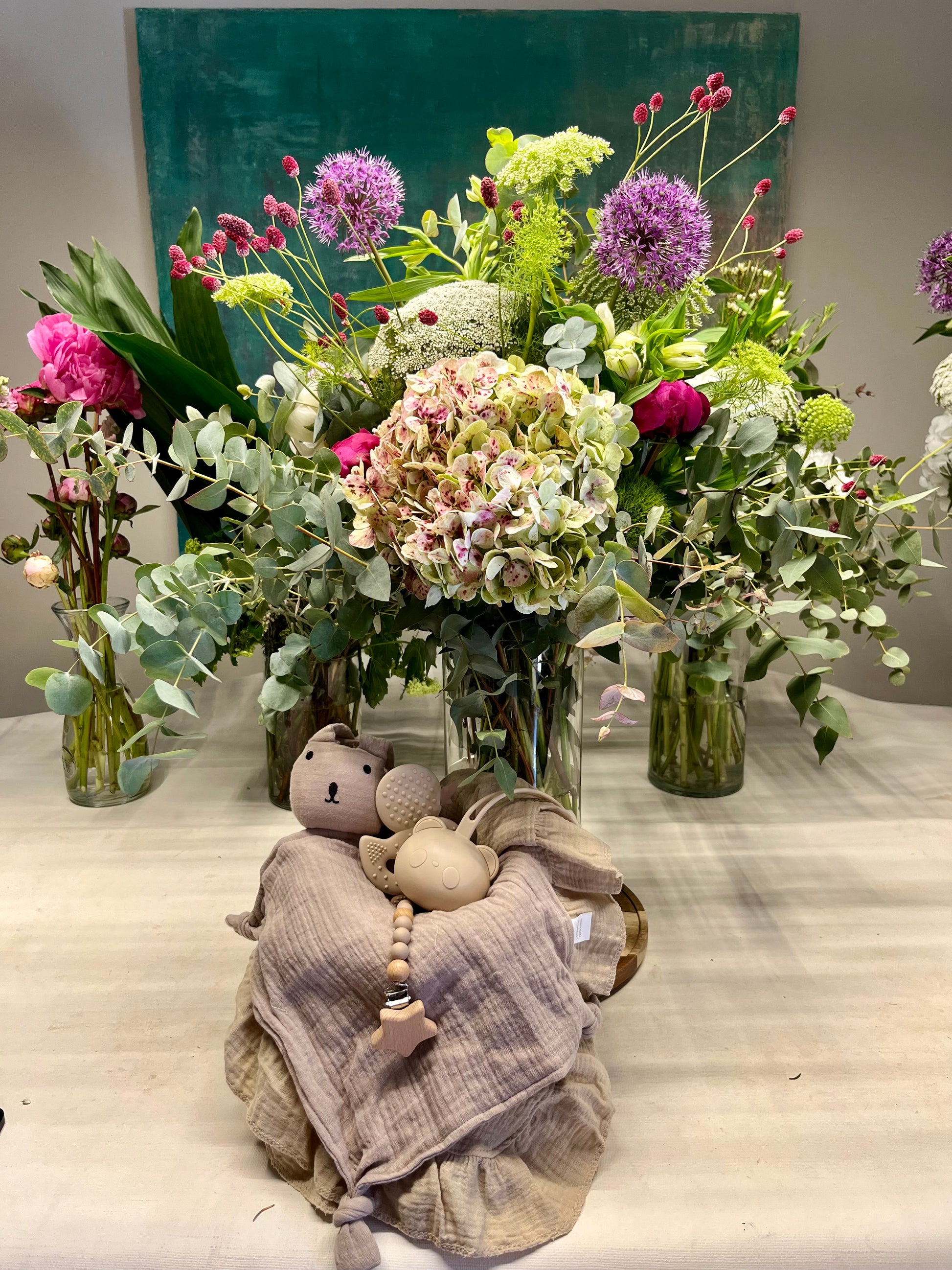 Celebra la llegada de un nuevo bebé con nuestros exclusivos centros de flores personalizados. Nuestro set de recién nacido incluye un ramo especial que puede personalizarse con el nombre del bebé, creando un regalo único y memorable.